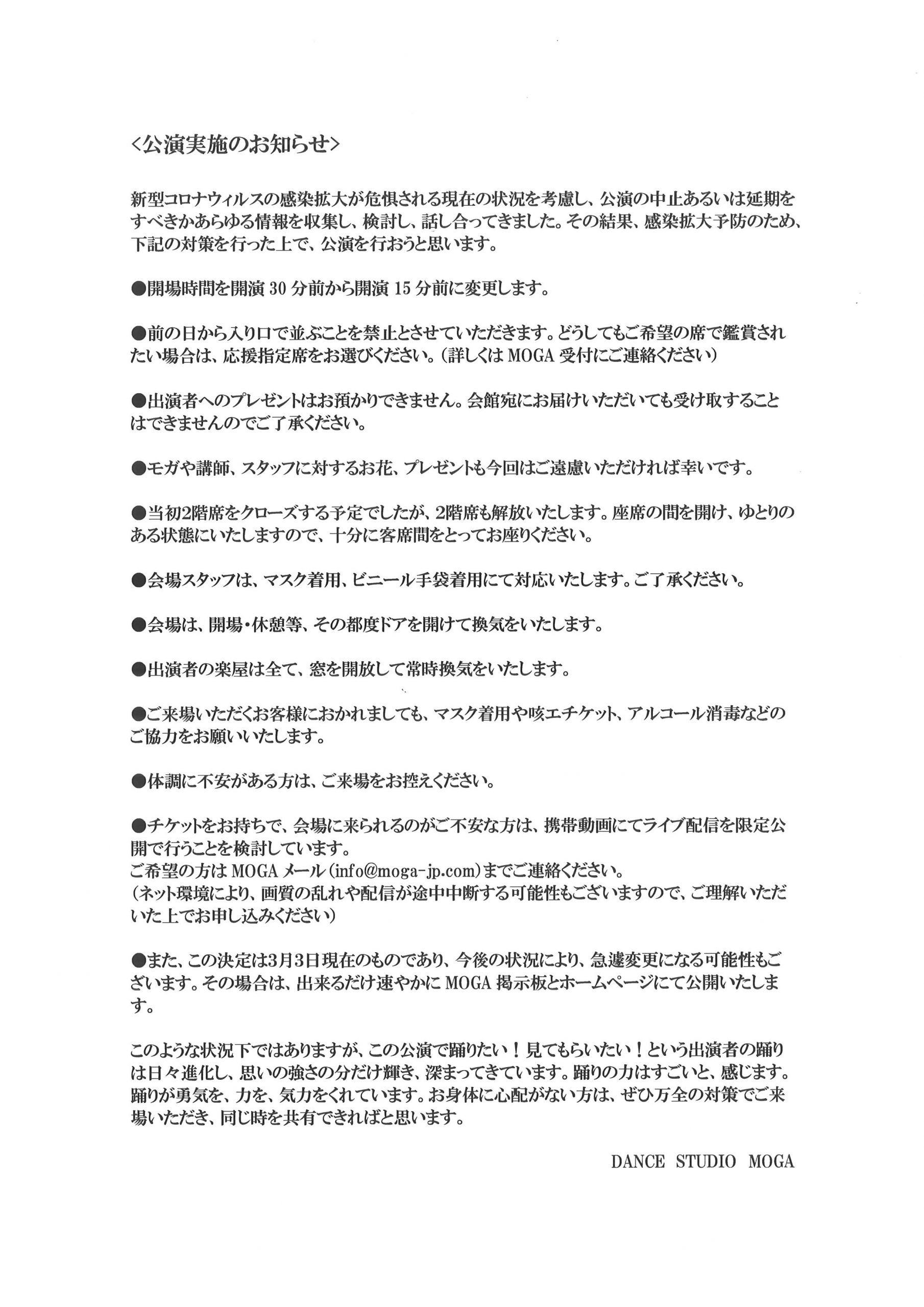 公演開催について/会員様へのお知らせとお願い