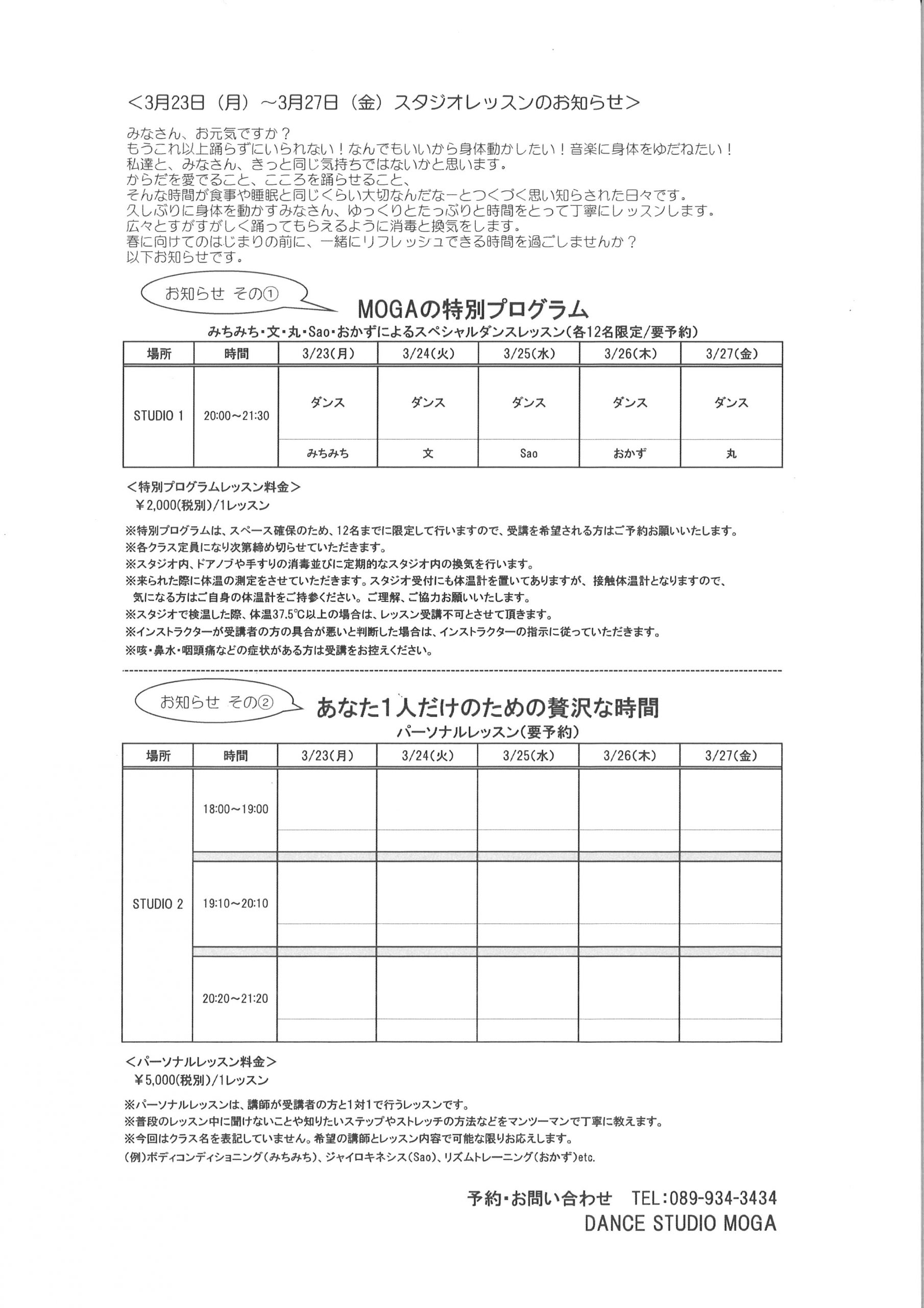 ← MOGAの特別プログラム(3/23~3/27)・パーソナルレッスンのお知らせ