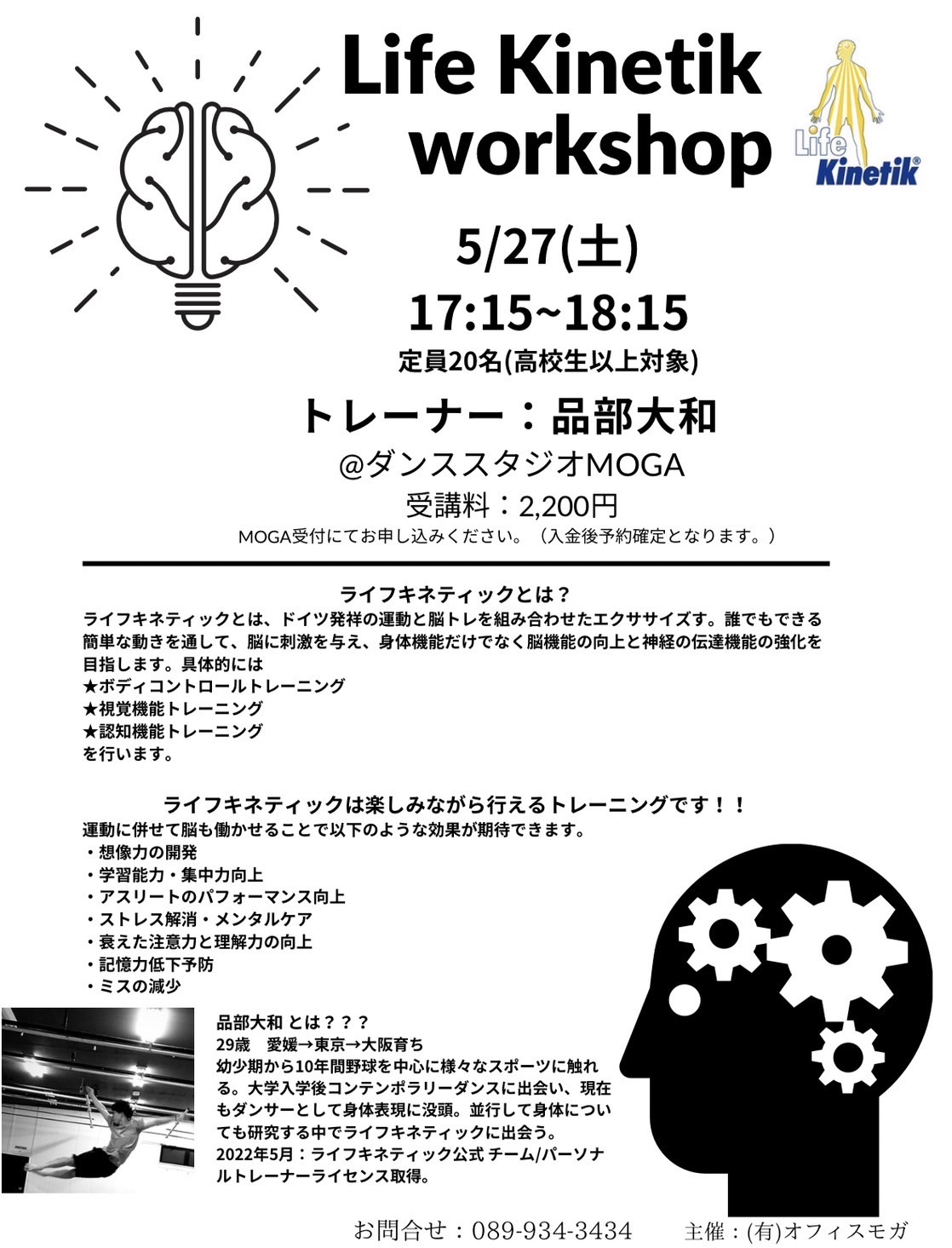 ライフキネティックパーソナルトレーナー。ダンサーでもある品部大和がMOGAでWS!