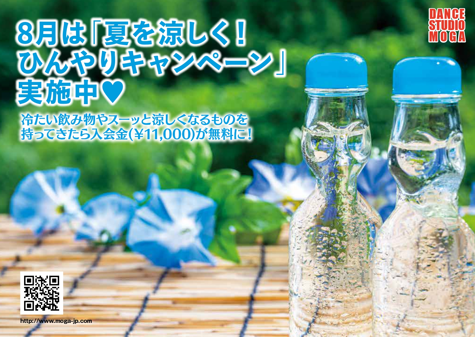 8月は「夏を涼しく!ひんやりキャンペーン」実施中!冷たい飲み物や、すーっと涼しくなるものを持ってきたら入会金(¥11,000)が無料に!今月もハッピーに踊っていきましょう♡