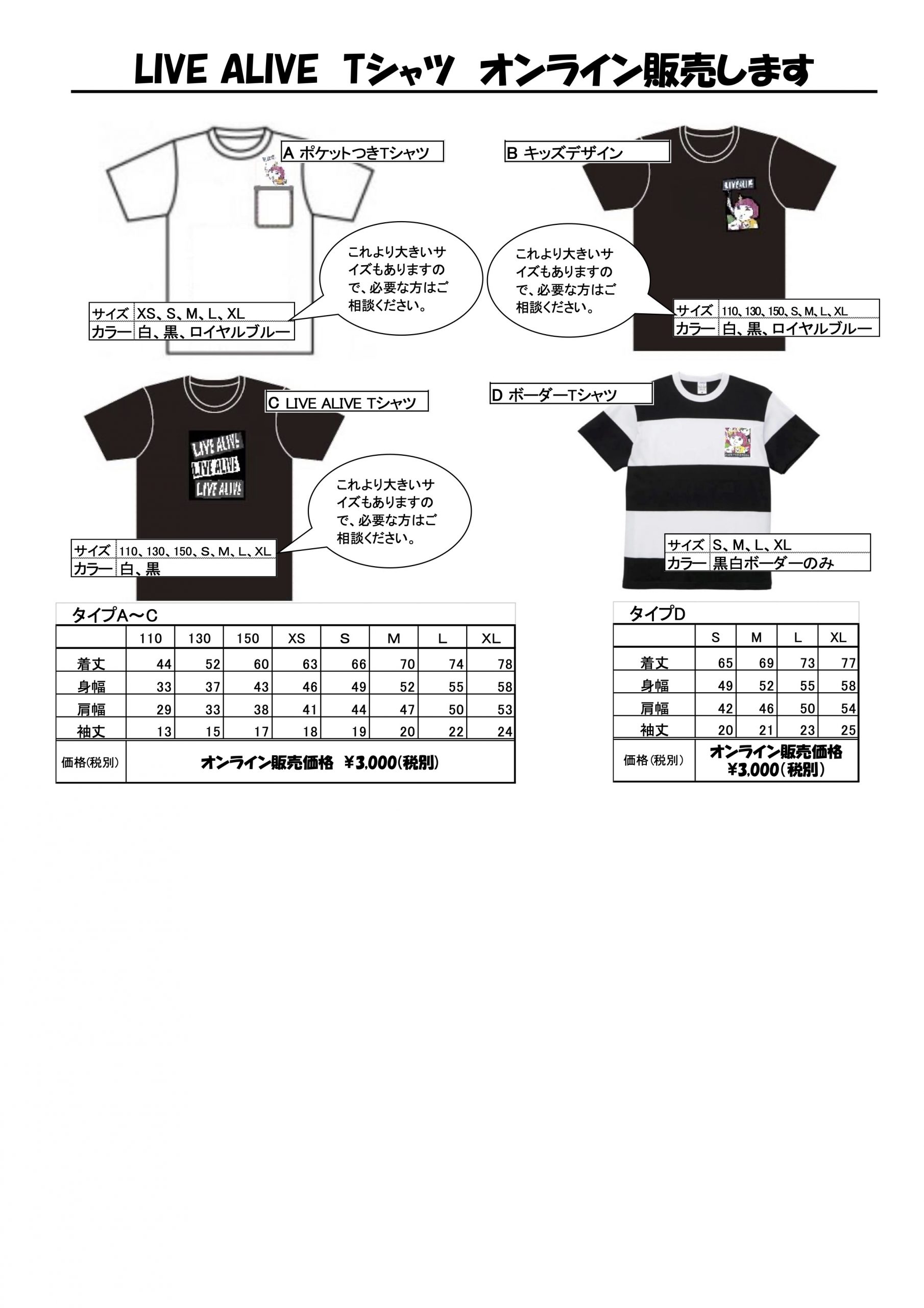 LIVE ALIVE 限定Tシャツオンライン販売します!