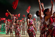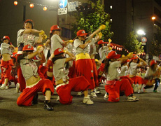熱い炎から鼓動が生まれ、リズムが生まれ、真っ赤なハッピが揺れ動く。