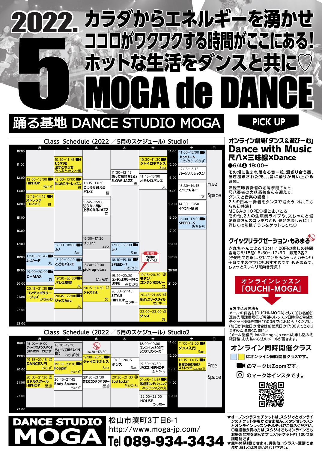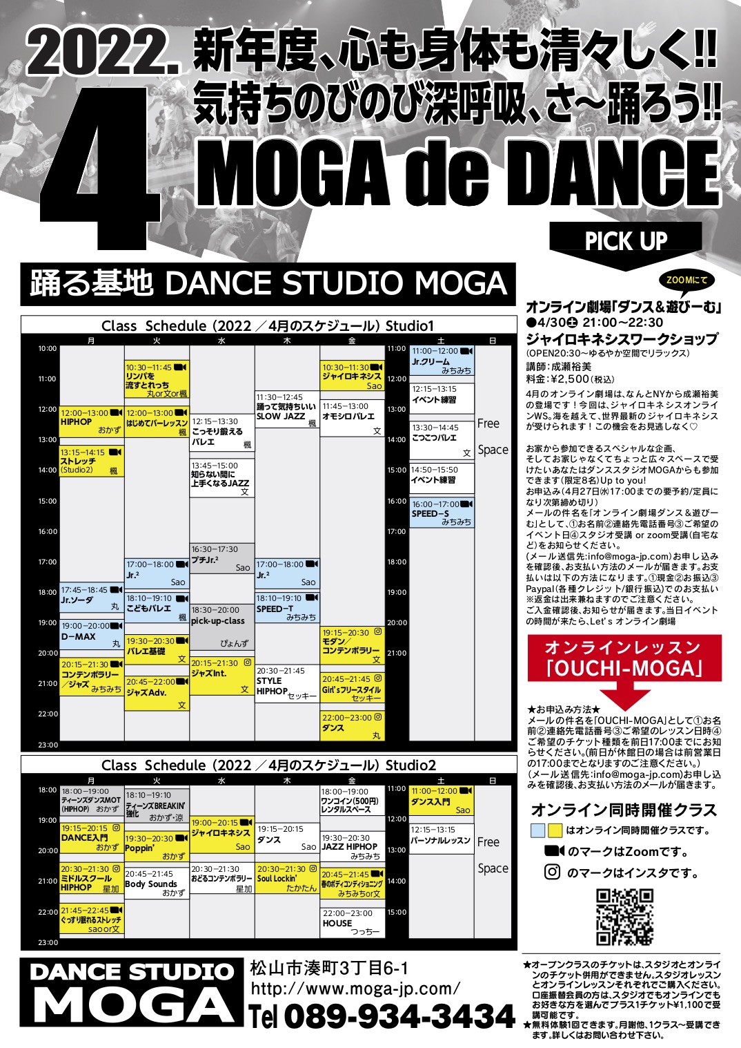 お家から参加できるスペシャルな企画、そしてお家じゃなくてちょっと広々スペースで受けたいあなたはダンススタジオMOGAからも参加できます(限定8名)Up to you!