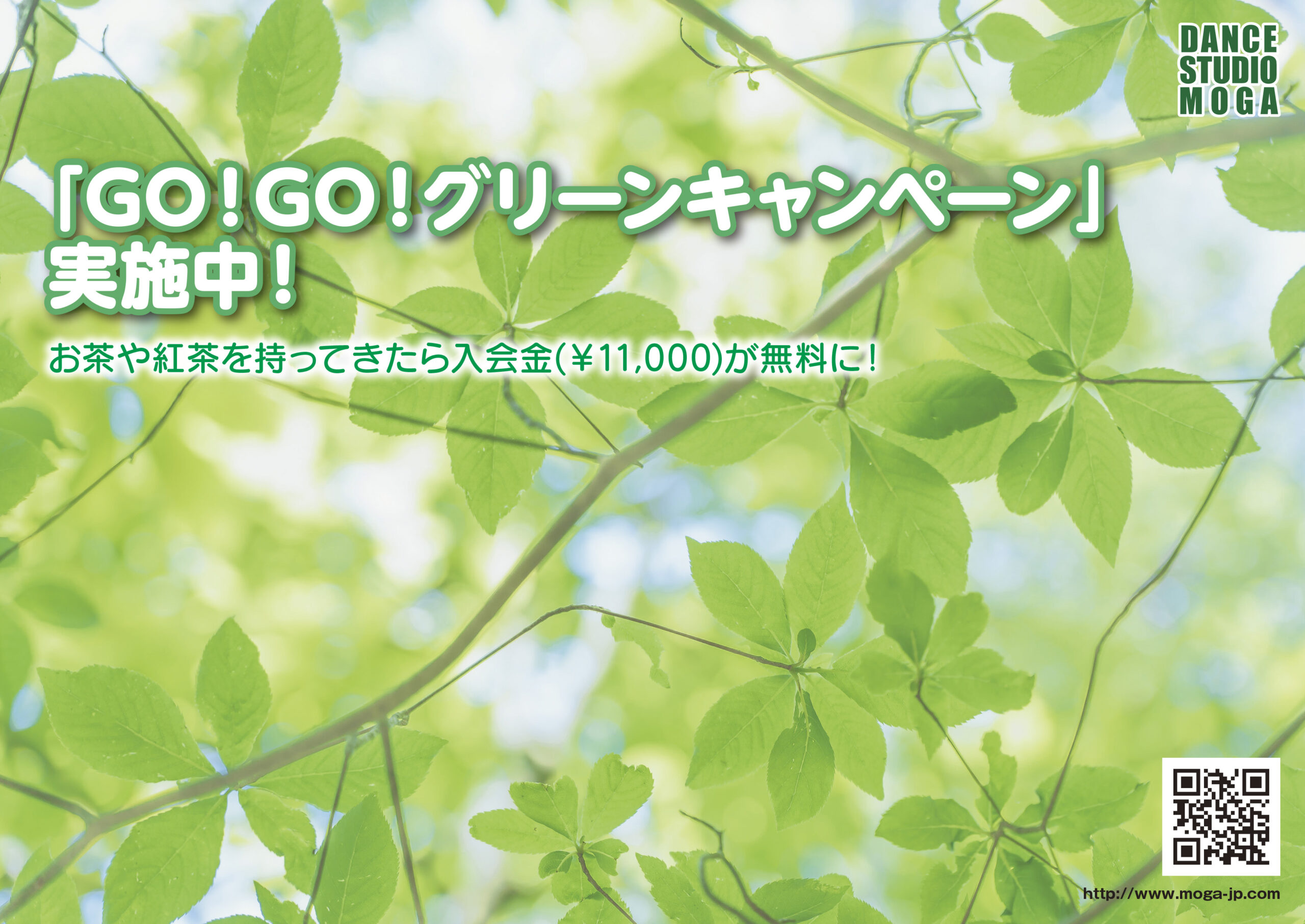 風薫る5月、すがすがしく晴れやかに♡5月は「GO!GO!グリーンキャンペーン」実施中!お茶や紅茶を持ってきたら入会金(¥11,000)が無料に!今月もハッピーに踊っていきましょう♡