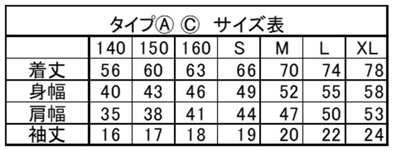 サイズ表(タイプA・タイプC)