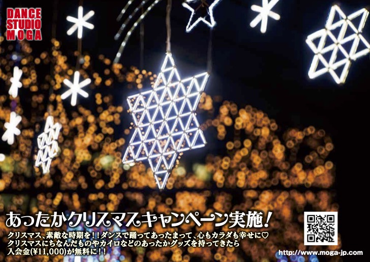 クリスマスにちなんだものや、カイロなどのあったかグッズを持ってきたら入会金(11,000円)が無料に!!遊び心持ってMOGAにかも〜ん♡