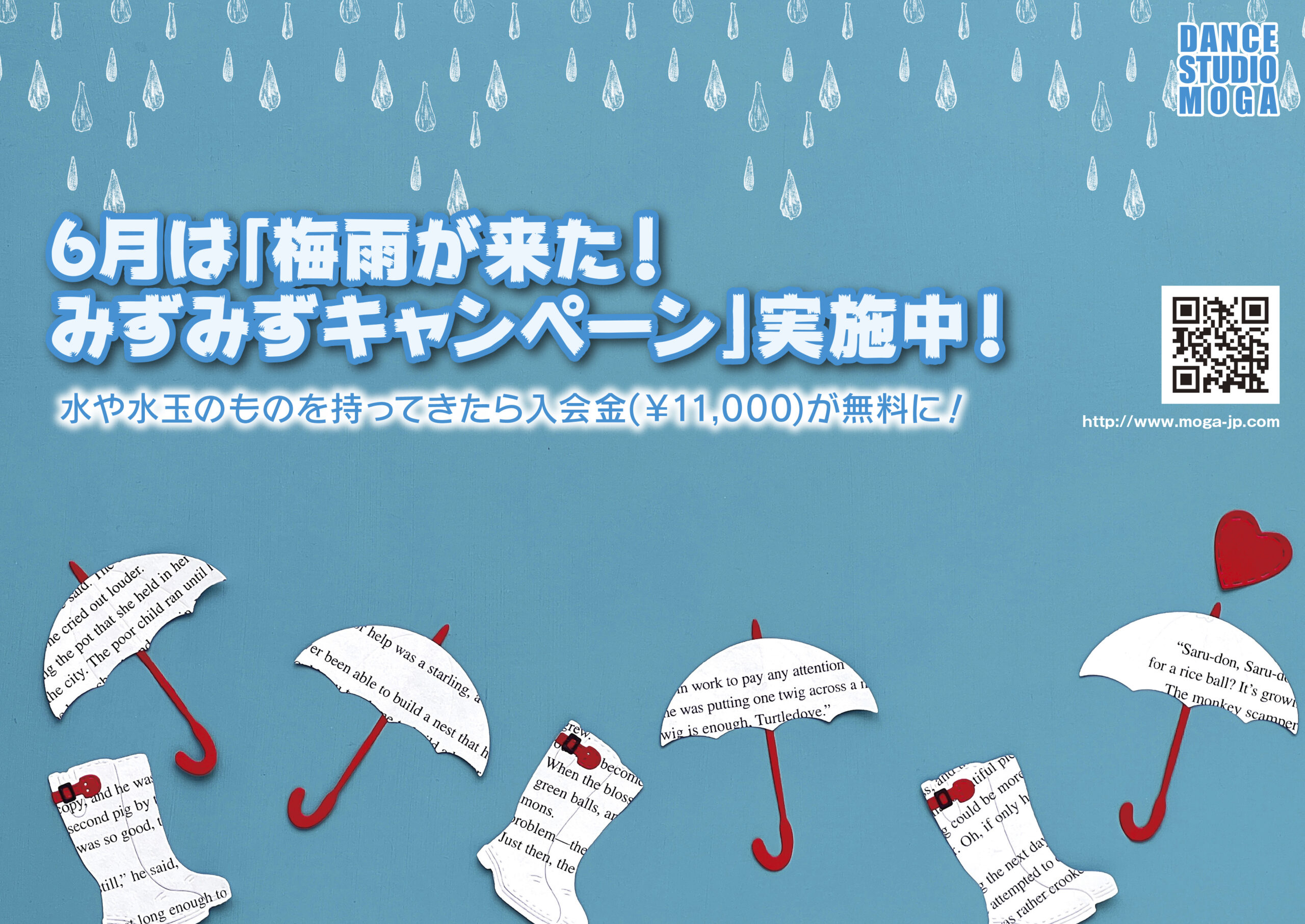 6月は「梅雨が来た!みずみずキャンペーン」実施中!水や水玉のものを持ってきたら入会金(¥11,000)が無料に!今月もハッピーに踊っていきましょう♡