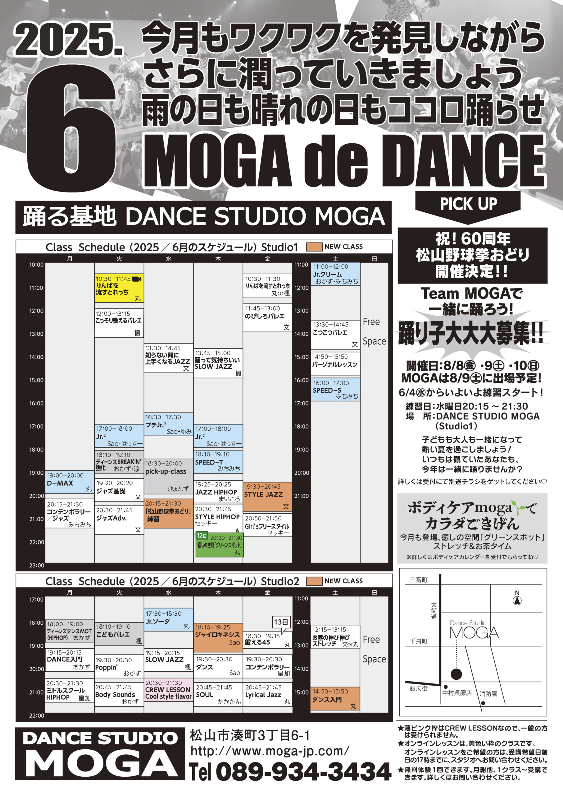 6月のレッスンは、人数制限があるため予約優先制となります。確実にレッスンを受講されたい方は、月謝購入をお勧めいたします。また、5・10クラスチケットについては、受講するレッスンをご連絡いただければ予約の確定ができます。(確定をした場合、キャンセルはできませんので、ご了承ください。)