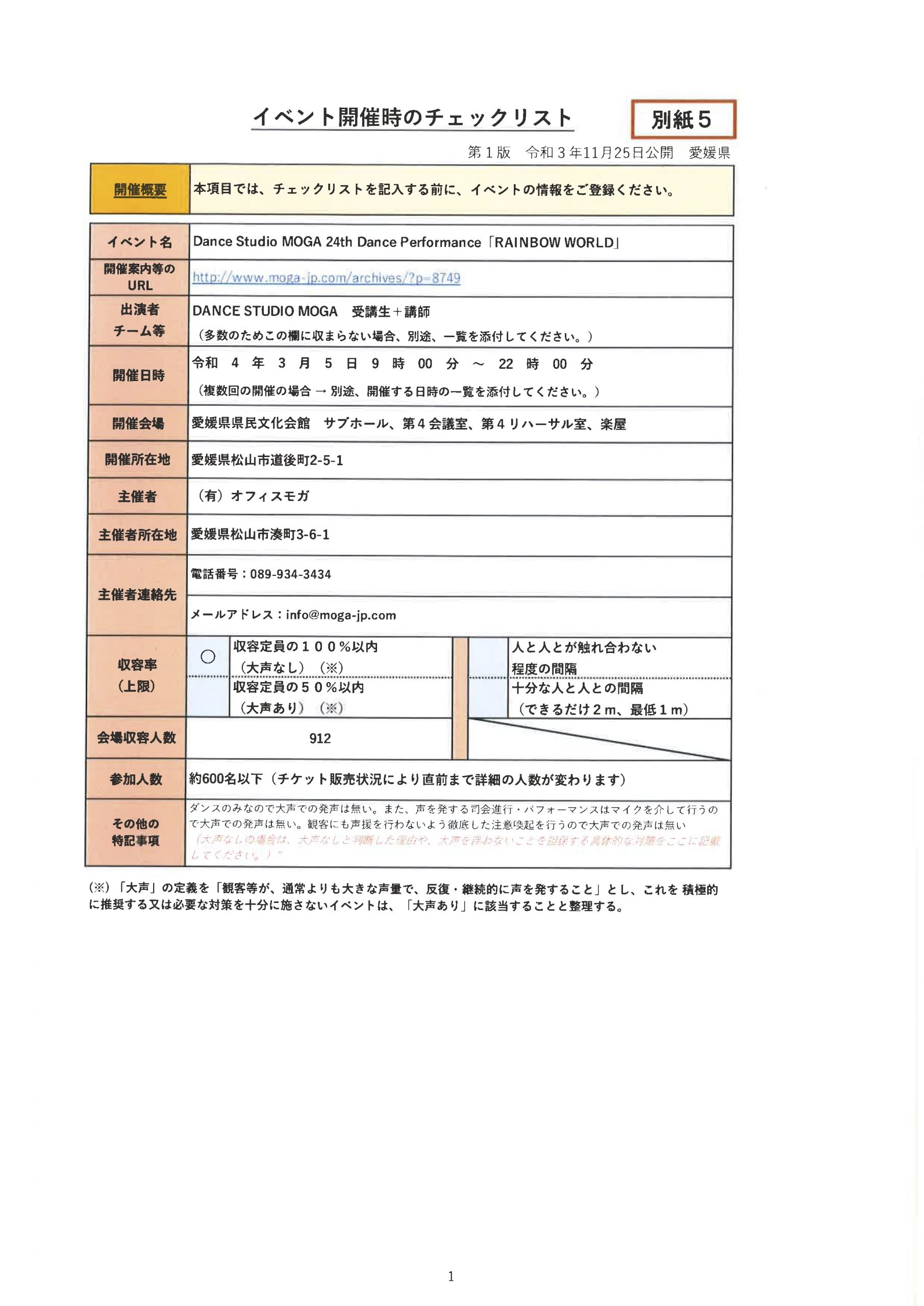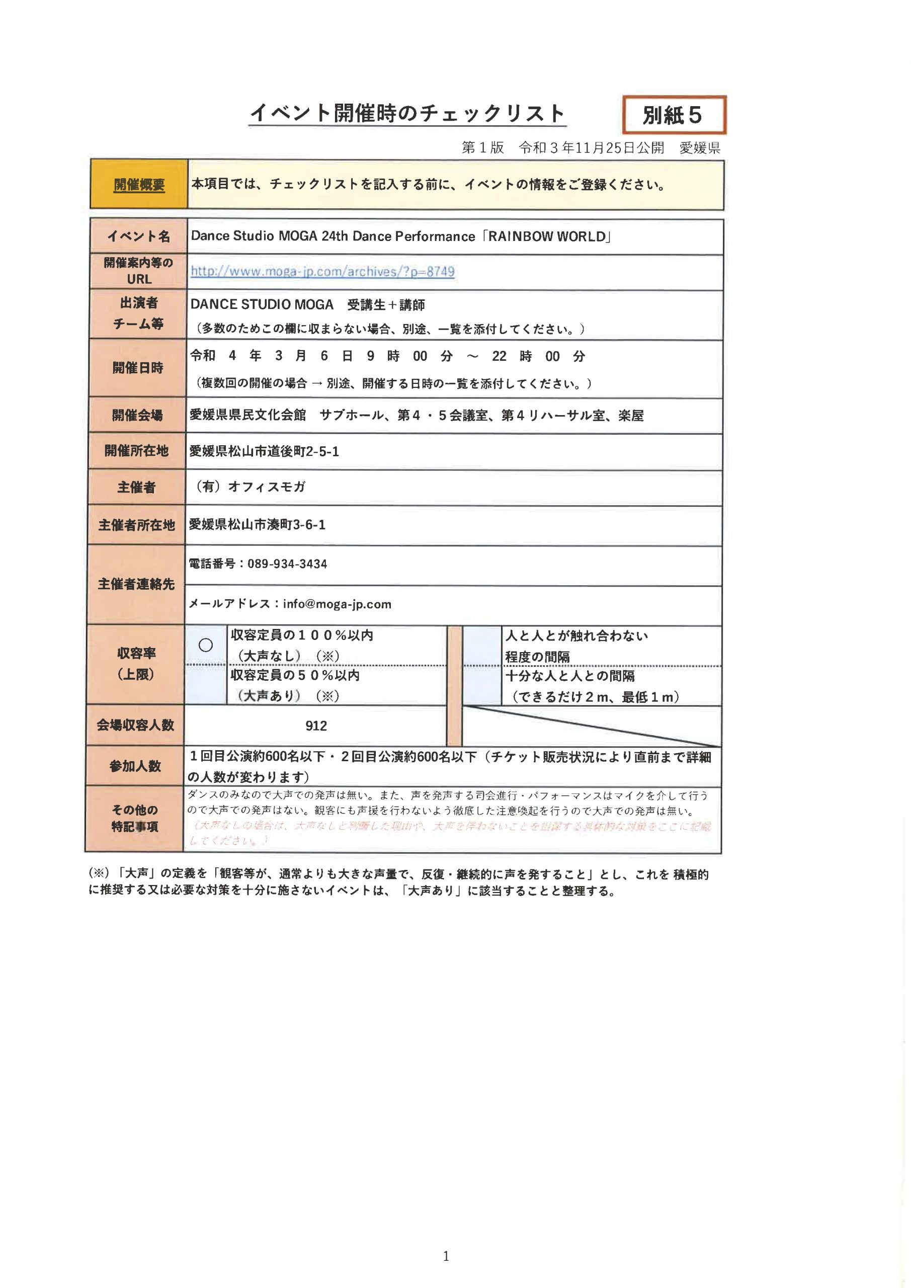 DANCE STUDIO MOGA24th Dance Performance「RAINBOW WORLD」新型コロナウィルス感染防止対策(2021年11月現在:コロナ状況により内容の変更の可能性あり)