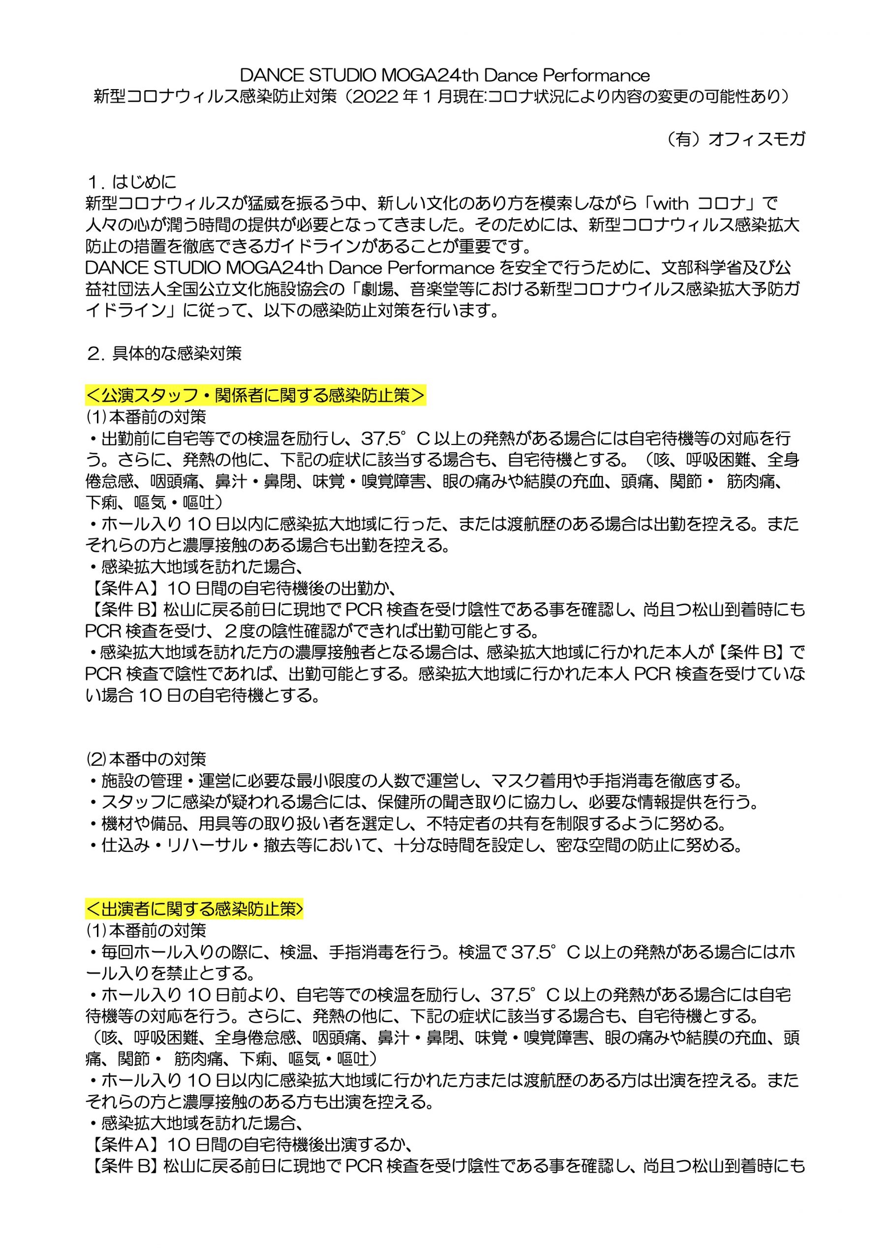 DANCE STUDIO MOGA24th Dance Performance 新型コロナウィルス感染防止対策(2022 年 1 月現在:コロナ状況により内容の変更の可能性あり)