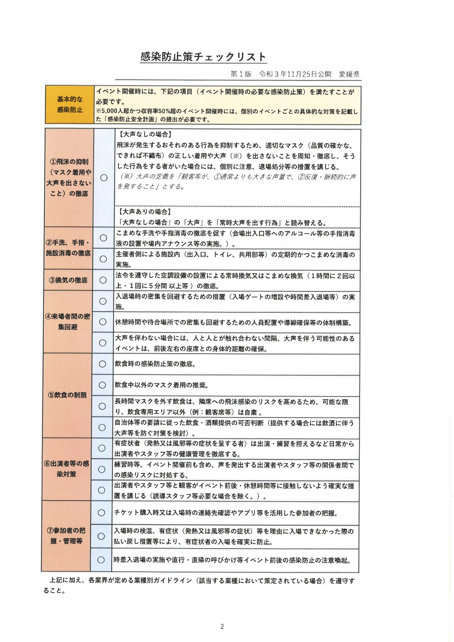 感染予防・感染拡大防止対策ご協力のお願いと注意事項