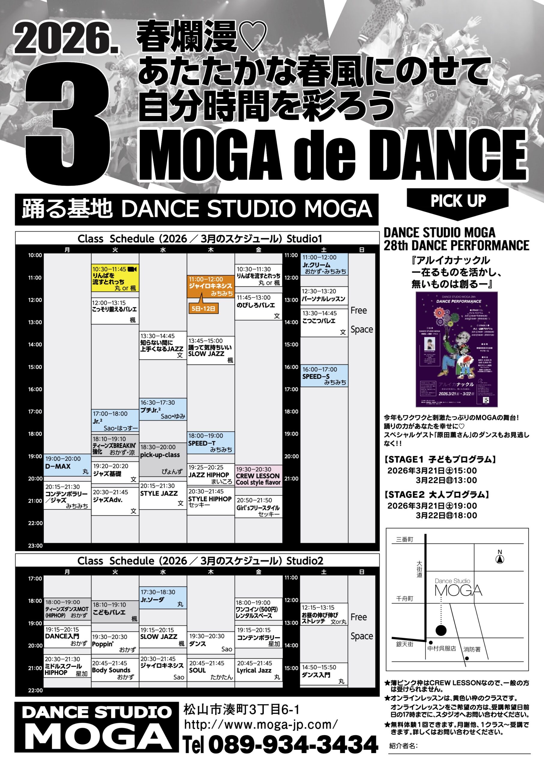 ※スクールクラスは2ヶ月7回のため、お休みの場合があります。随時スタジオまでお問い合わせ下さい
